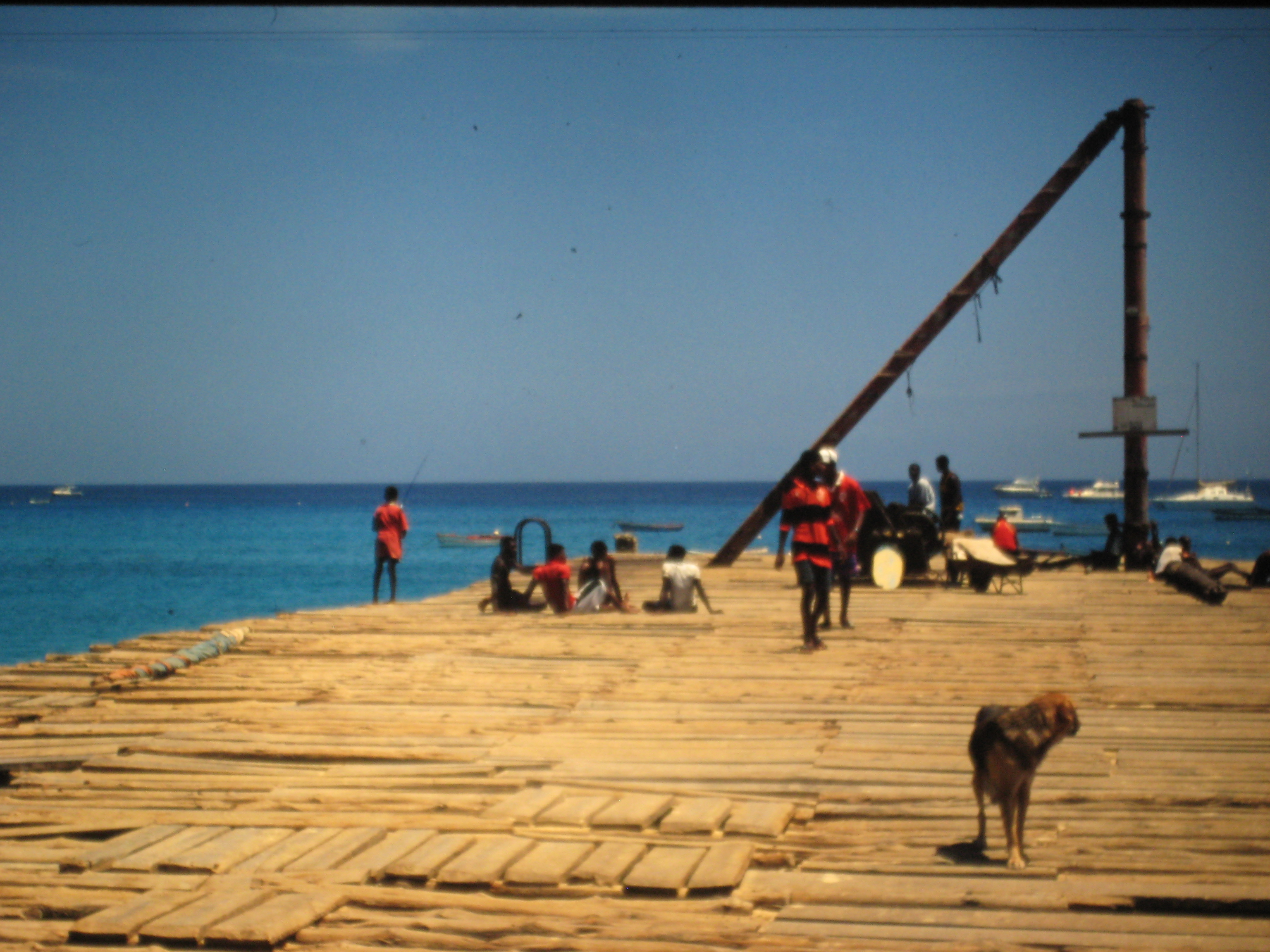 In previsione di passare il terzo giorno di relax a Sal dopo cena io ed altre quattro donne del gruppo decidiamo di scoprire la vita notturna locale, così approdiamo al Pirata alle due. E’ una piccola discoteca con arredamento tropicale dove suonano musica nera, ballabile e non impegnativa. I turisti italiani sono la maggioranza, i più eleganti provengono dal vicino villaggio ma ci sono anche dei capoverdiani che si esibiscono in danze vagamente erotiche dove di solito una donna è “circondata” davanti e dietro da due uomini. In Africa è normale esprimere la corporeità ed è bello pensare che anche noi dovevamo essere così un tempo, ma ora abbiamo perso molti istinti. Guidati da alcuni ragazzi di Santa Maria proseguiamo la serata al Madrugada che è un locale un po’ più fumoso ma con bella musica capoverdiana ritmata, da ballare da soli o in coppia. Parlando con loro sentiamo che si sentono un po’ sfruttati dai turisti ma sono fieri di lavorare con i nostri connazionali. Peccato che lo stipendio di un muratore sia di 2000 scudi, meno di 100.000 Lire al mese, ben poco per vivere se si considera che la vita a Sal è cara, la terra dà pochi frutti e molte cose che servono per vivere, le risorse per costruire e mangiare ecc. devono essere importate.