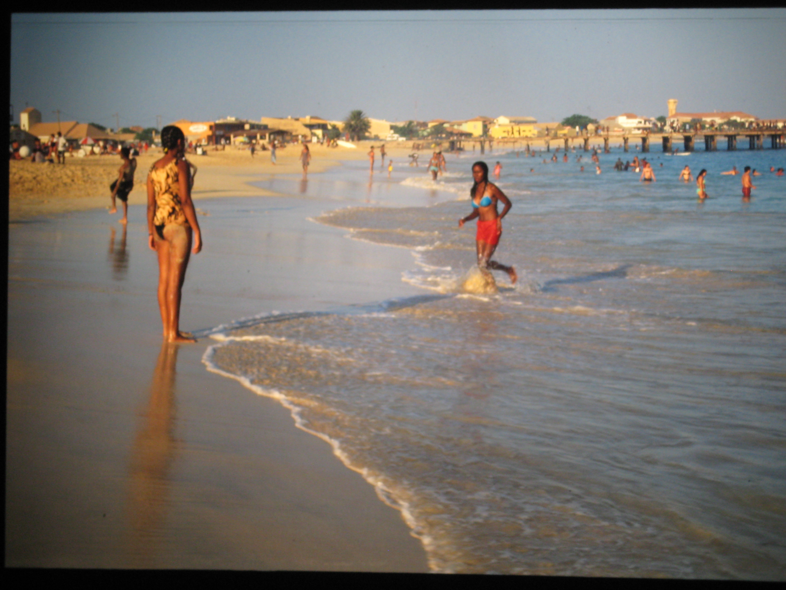 Passando accanto a queste oasi del relax made in Italy ci sentiamo decisamente a casa: telefonini, conversazioni e riviste di pettegolezzi da spiaggia, insomma la vera vacanza dove (non) ci si sente fuori dal proprio mondo. Vedo una donna di colore con in testa un secchio pieno di banane e le scatto una foto, lei se ne accorge e mi lancia un’imprecazione. Qui a volte è difficile avere buoni rapporti con i turisti ma in futuro il turismo sarà l’attività più redditizia di Sal. Paradossalmente, le altre isole sono molto meno attrezzate e la gente talvolta è proprio povera, ma grazie alla loro genuinità è molto facile socializzare, farci raccontare le loro storie e tornare a casa in qualche modo arricchiti dentro. Scopriamo un bar dove fanno un buon caffè e ne approfittiamo, circondati da altri turisti italiani. L’atmosfera a Sal è tranquilla, ideale per una vacanza di relax da trascorrere nella bellissima spiaggia bianca nettamente divisa tra il “lato villaggi” a destra, ben curato, ed il “lato capoverdiani” a sinistra, selvaggio ma molto più genuino.