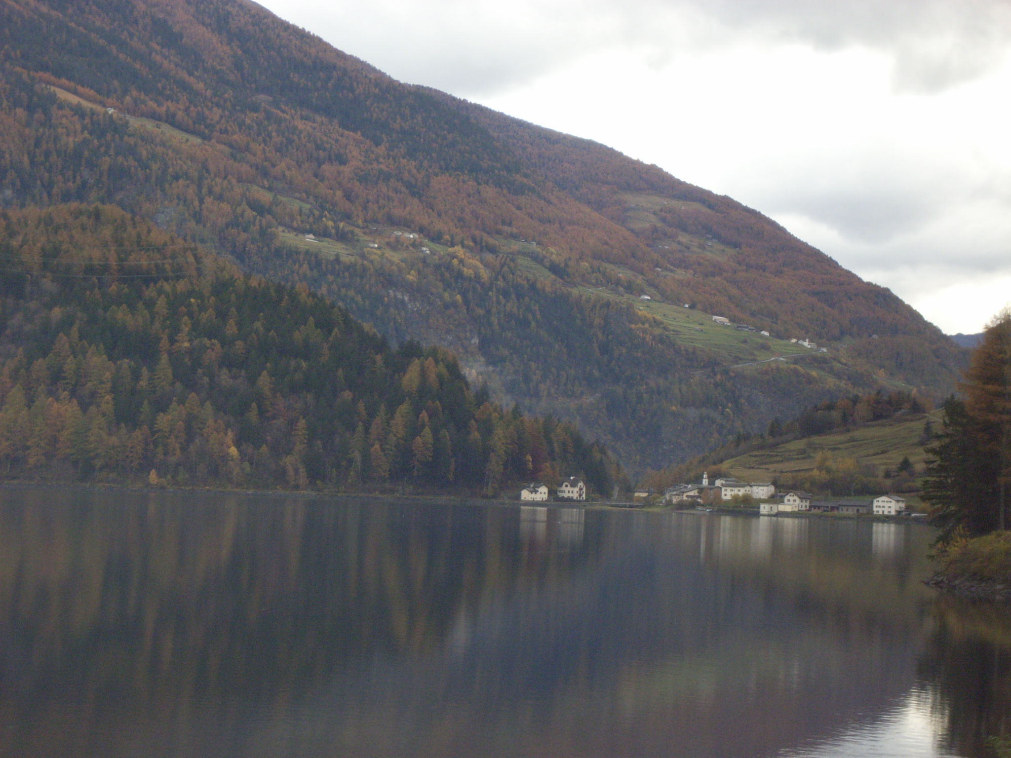 Piove sempre, scende acqua da tutte le parti. A metà pomeriggio potremmo già andare a Villa di Tirano, siamo così curiose di vedere il BB che ci ospiterà da avvicinarci in auto finché c’è luce. Che bellissimo posto! Si raggiunge attraversando vigneti e meleti su una strada secondaria, poi si sale brevemente a un gruppo di case isolate. Non ci fermiamo ora, proseguiamo finché un cartello VENDITA MELE – KIWI ci invita a un’altra sosta mangereccia. Un meraviglioso profumo ci accoglie in un magazzino, dove possiamo assaggiare e scegliere mele gialle e rosse di diverse dimensioni, kiwi più o meno maturi e un ottimo succo di mele. Prendiamo due casse di frutta che mangeremo con gusto, le mele sono un ingrediente di tutte le mie confetture e presto le metterò in pentola! Facciamo un’ultima pazzia, oltrepassiamo il confine per approfittare del minor costo della benzina in terra elvetica. Alla dogana un solerte finanziere vuole vedere i nostri bagagli e chiede: dove andate – quanti vestiti avete? In effetti le borse occupano buona parte del bagagliaio, perché sotto ci sono le mie conserve. Tutto a posto, andate pure. Per i primi chilometri la strada corre accanto alla ferrovia del trenino rosso, siamo emozionate come scolarette al pensiero della gita che ci attende l’indomani. Incontriamo però paesi semideserti con negozi chiusi, una cantina bella (anche troppo) e un laghetto, quando fa buio torniamo indietro e stavolta ci dirigiamo da Cinzia e Silvio, i nostri padroni di casa.