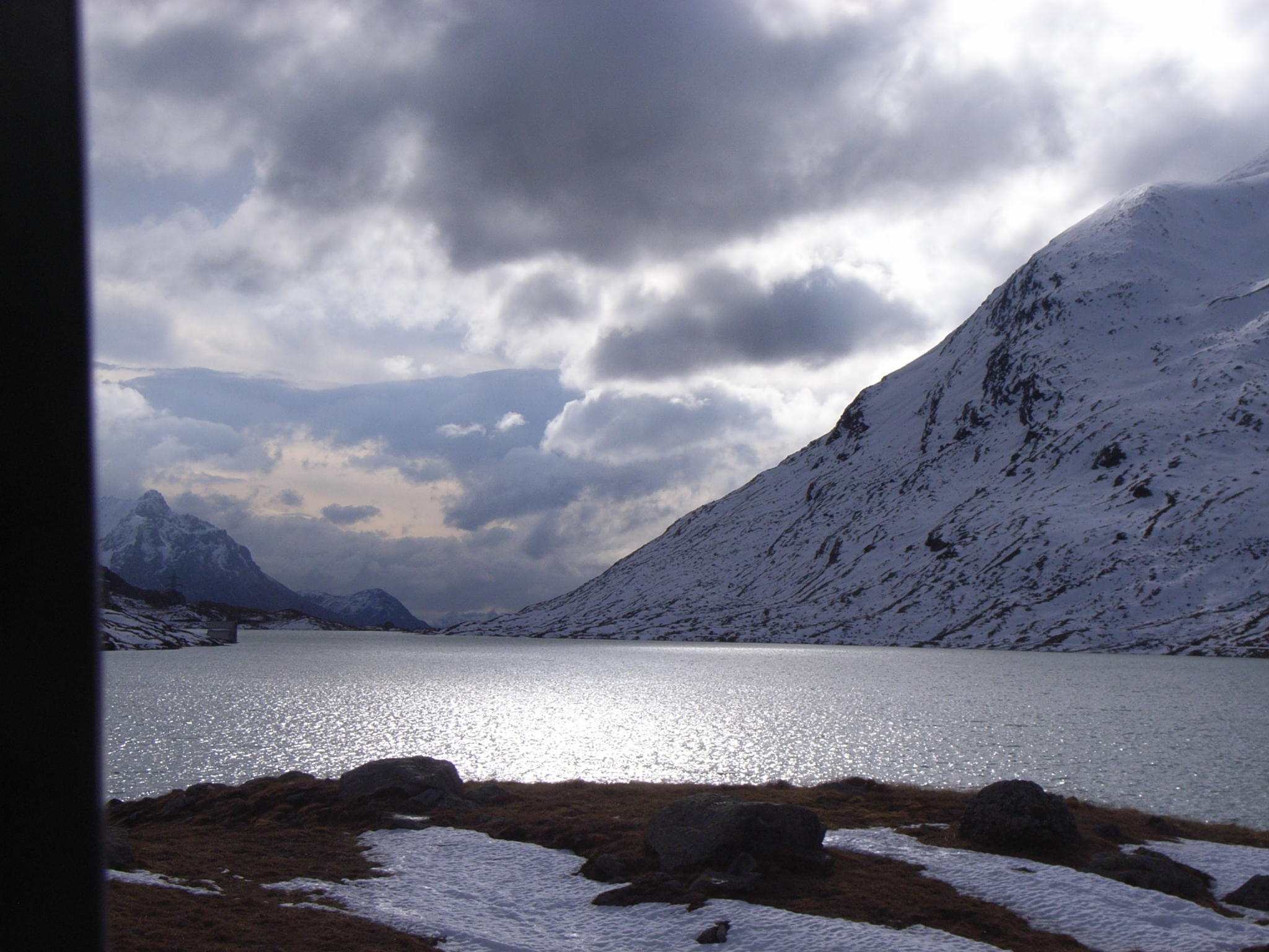 In lontananza vediamo brulle montagne scure spruzzate dalla prima neve, laghetti, torrentelli e cascate, un panorama assai piacevole e vario, finalmente ha smesso di piovere.