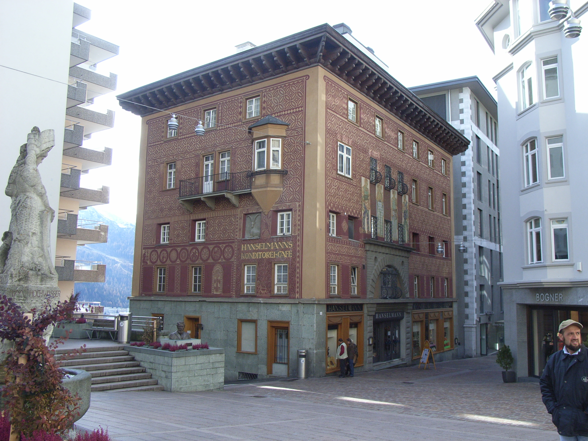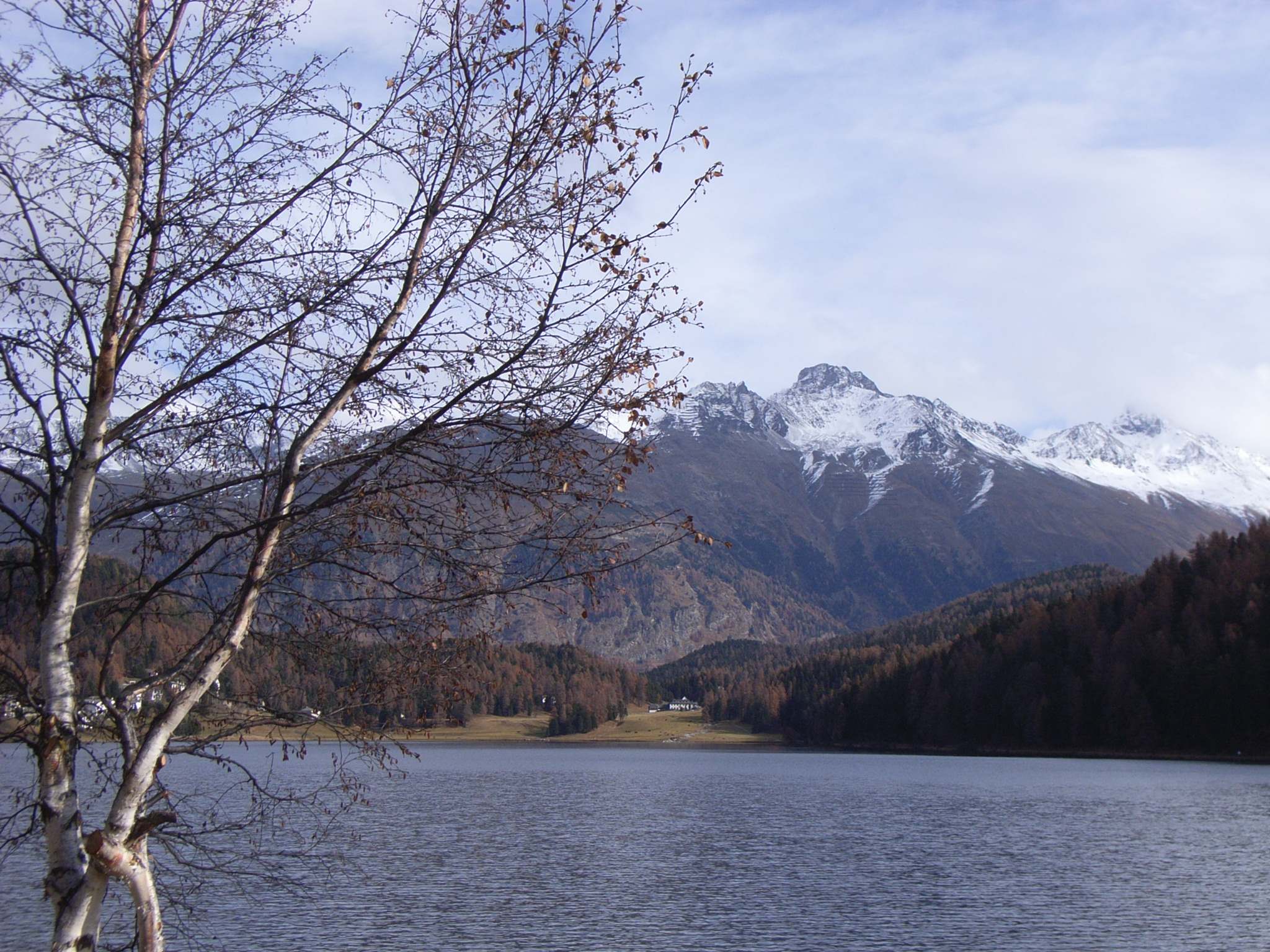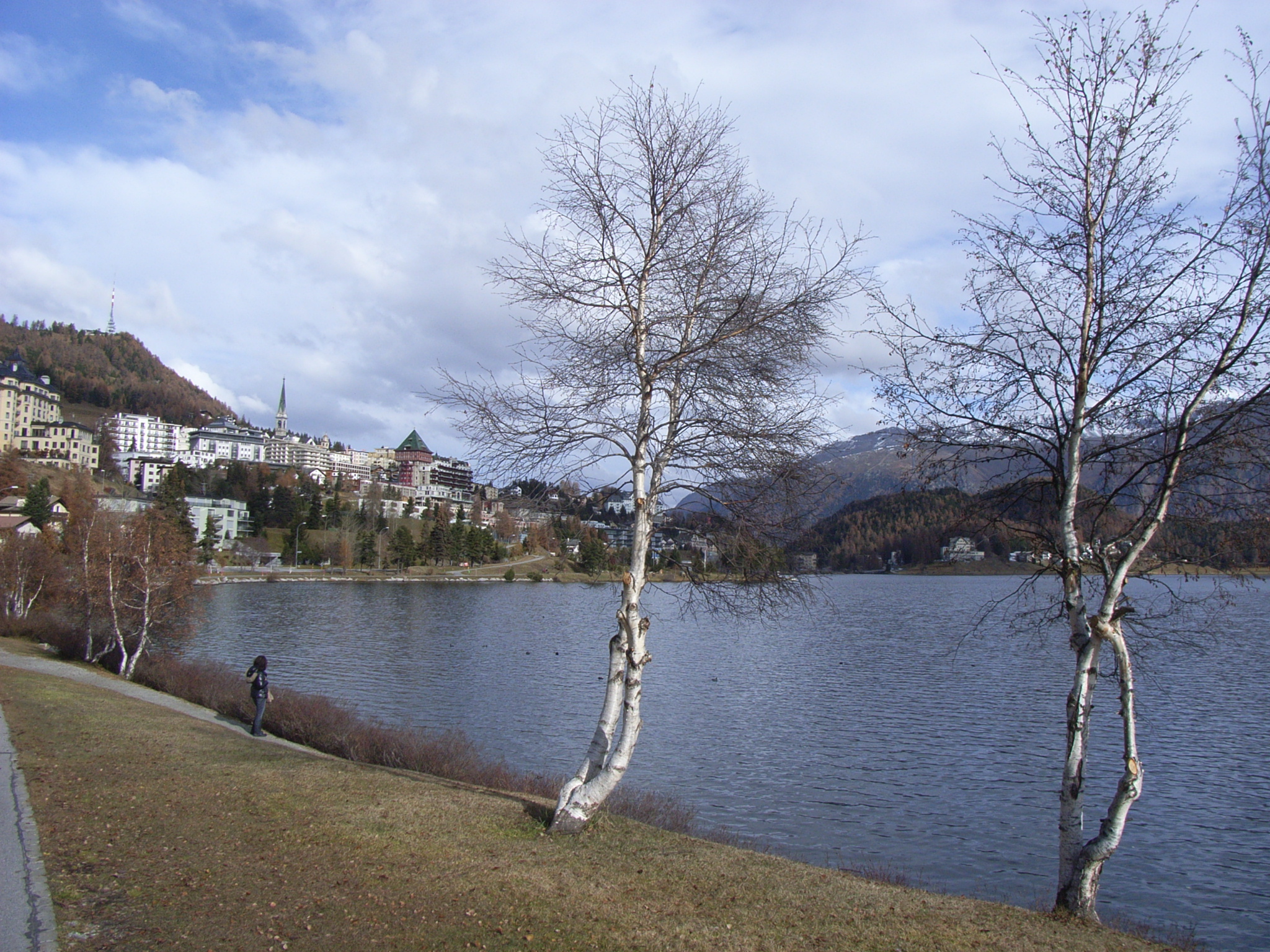 Scendendo dal trenino rosso siamo catapultate in una realtà modernissima che ci lascia spaesate e confuse. Palazzi altissimi, cemento ovunque, indicazioni stradali fin troppo ricche ci fanno capire che siamo in un posto super organizzato… ma deserto. Su un viale che porta in centro, banche e boutique elegantissime delle griffe più esclusive si susseguono come si conviene a un luogo così opulento, ma è tutto chiuso! Ci aspettavamo di non trovare tutto aperto di domenica, ma a inizio novembre c’è qualcosa di più, la bassissima stagione in cui tutti gli operatori chiudono e riposano; a fine mese aprirà la stagione invernale. E l’azienda di soggiorno ha ragione, qui splende un sole tiepido. Saliamo sulla destra fino a uno slargo con una bella vista sul lago, prati con l’erba ormai spelacchiata e le montagne spruzzate di neve sullo sfondo. Cerchiamo un baretto dove scaldarci con un caffè ma troviamo solo locali vecchio stile, carissimi, con avventori molto più grandi di noi.