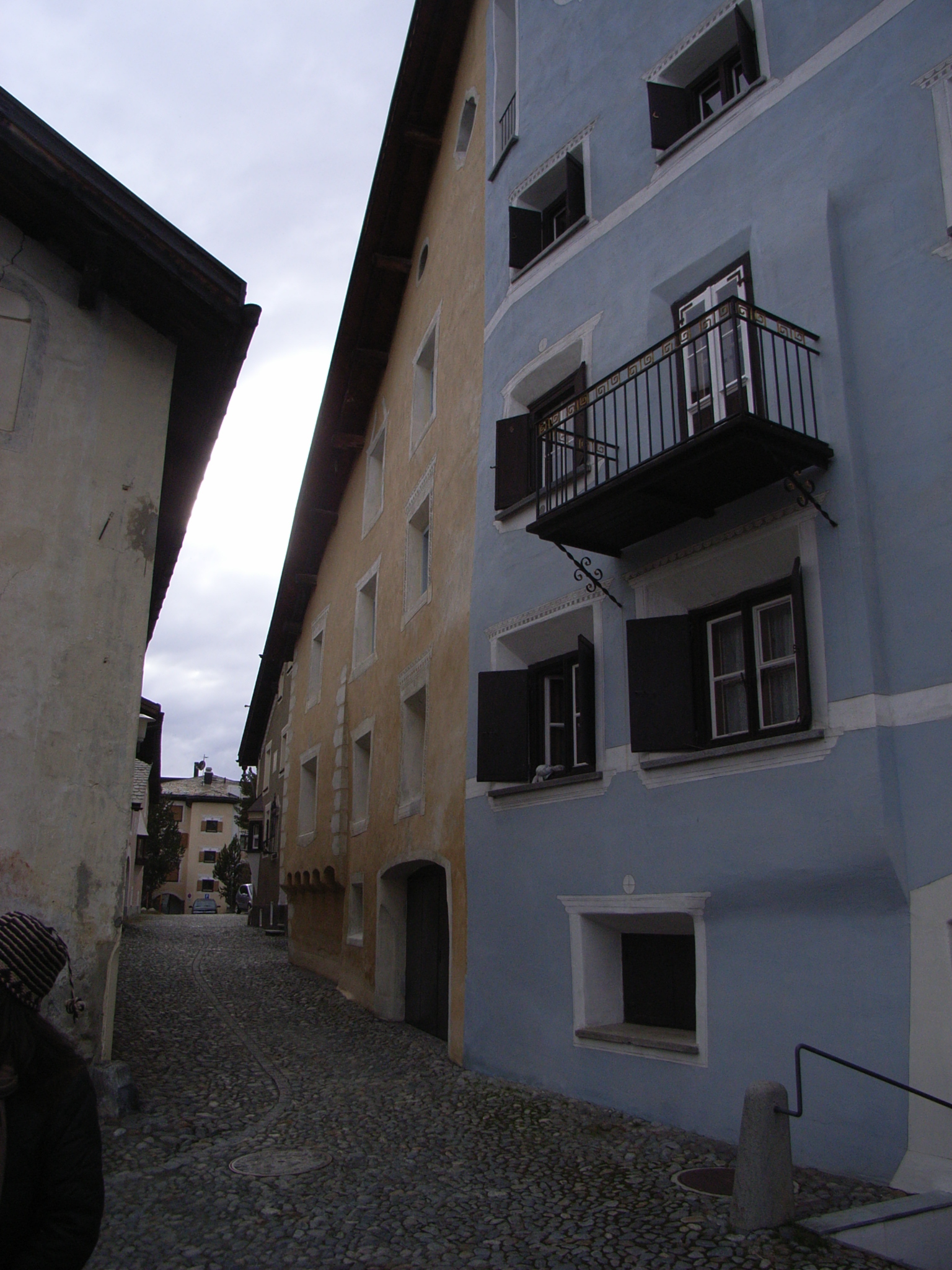 A un certo punto abbiamo un po’ di fame, un languorino che desideriamo placare, per poi stare a posto fino a sera. Decidiamo anche di non restare qui fino alle 15, orario previsto del treno di ritorno. Se prendiamo il treno delle 14 ci potremo fermare al primo paese, Celerina, che all’andata ci aveva molto ispirato per le caratteristiche vecchie case decorate. Sentendo il buon profumo di cibo che esce dalla locanda della stazione, entriamo e ordiniamo una minestra. Peccato che non sia poi così buona, sa da liofilizzato o poco più. Salutiamo Sankt Moritz senza rimpianti e risaliamo sul trenino rosso. Celerina è stupenda…