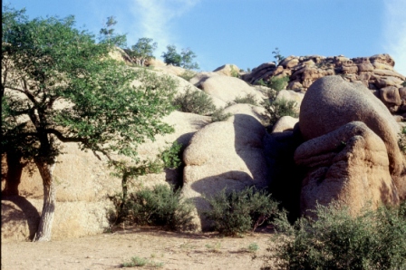 Dalla cima si vede la valle, le gher e gli animali al pascolo dispersi in uno scenario verdeggiante, rigato solo da un fiumiciattolo e qualche albero.