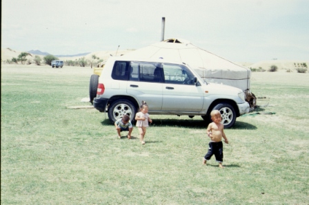 La visita è interessante perché ci offre uno spaccato della storia mongola: nella fase di massimo splendore il palazzo conteneva persino una fontana d’argento a forma d’albero che erogava a turno latte, vino, vino di riso o airag. Nel piazzale dove parcheggiamo, accanto a baracche con bancarelle di souvenir vi sono sei aquile bendate e legate, con cui i turisti possono farsi fotografare. Si alza il vento, la polvere sollevata ci costringe a rifugiarci in una baracca per qualche minuto. Poi piove, vento e polvere cessano. Il vicino Anar Camp è collocato presso l’ansa di un fiume, bello ma non affascinante come Khognokhaan.