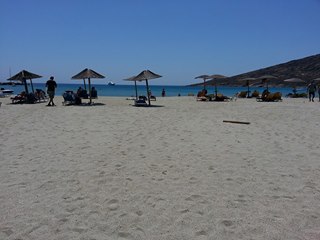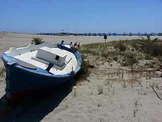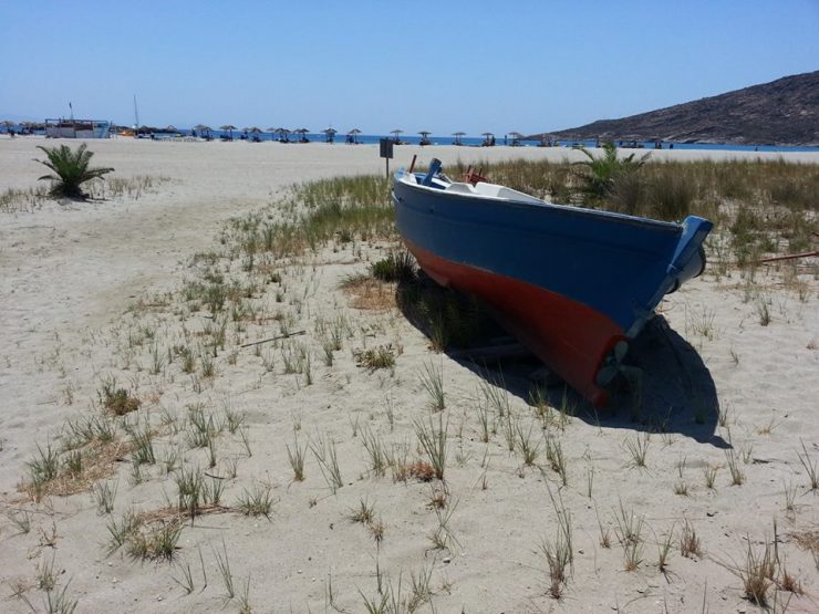 Poco al largo ci osservano due grosse barche più lussuose. Fine. Silenzio, turisti sonnecchiosi si godono la giornata di sole e il vento solleva la sabbia.