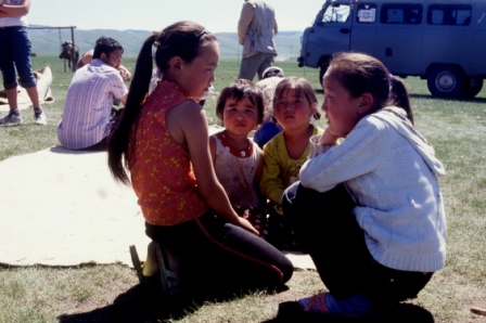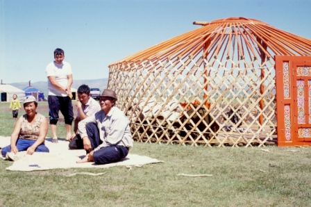 Assistiamo all’allestimento di un campo tendato e alla costruzione di una gher, con le famiglie impegnate a lavorare o a… tenere impegnati i bambini in uno spettacolo stupendo!