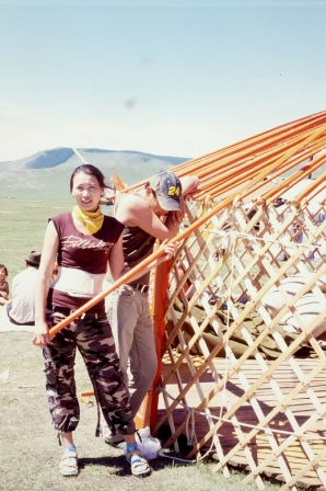 Arriviamo all’ora di pranzo, Tsetserleg si riconosce da lontano per gli edifici nuovi, a molti piani, con i tetti dai colori sgargianti. Mentre Tsojioo e Bothro pranzano noi ci prendiamo 1h di libertà per sbrigare varie commissioni: prendere acqua, cambiare tugrik in banca, collegarsi a internet. La locanda Fairfield fa da punto di ritrovo, passeggiamo nei giardini pubblici e nelle vie del centro, dove si stanno sviluppando infrastrutture e spazi comuni. Beviamo un caffè alla locanda, poi proseguiamo per Tsenkher dove all’omonimo camp passiamo la notte.