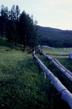 In fondo al camp, da due vasche fumanti esce acqua sulfurea a 85°C, due grossi tubi la portano ai camp.