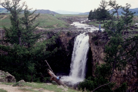 Proseguiamo per la cascata di Orkhon, 20m di scroscio d’acqua in una bella valle verde, che ora ha la sua massima portata. Non è nulla di speciale ma si trova in un bell’ambiente, e dopo le foto di rito proviamo il piacere di bagnarci i piedi nell’acqua fresca.