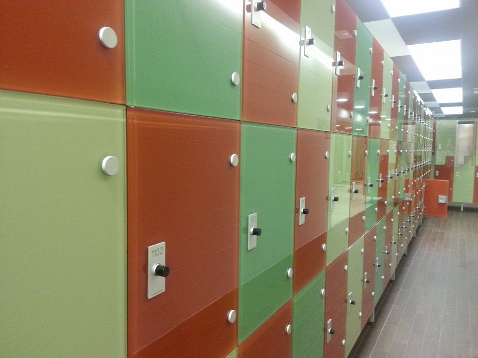 colori vivaci negli spogliatoi, mi sembra di essere alla Biennale di Venezia…