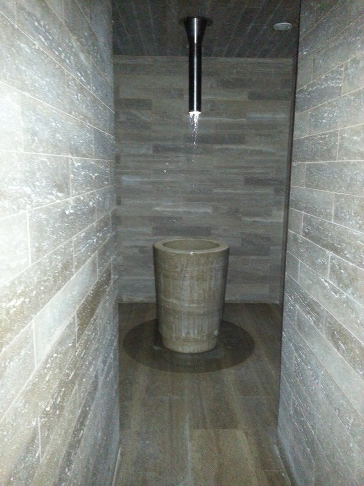 Pazienza, mi allontano all’esterno per assaporare la vera emozione del bagno notturno: quattro vasche dove stando immersa completamente sento il corpo massaggiato dall’acqua calda, e la testa picchiettata dalla pioggia fredda che scende copiosa.