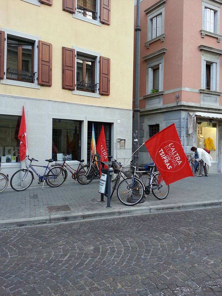 Biciclette sfrecciano ovunque, inclusi i simpatizzanti di vari partiti per le ultime battute della campagna per le imminenti elezioni europee.