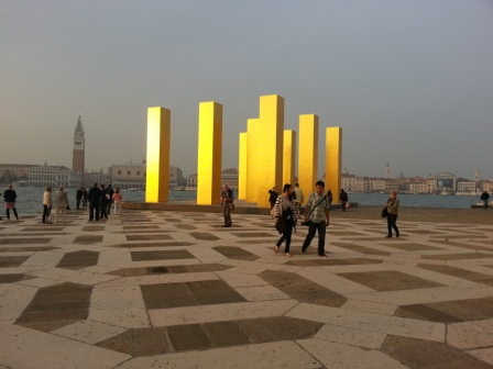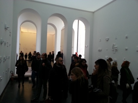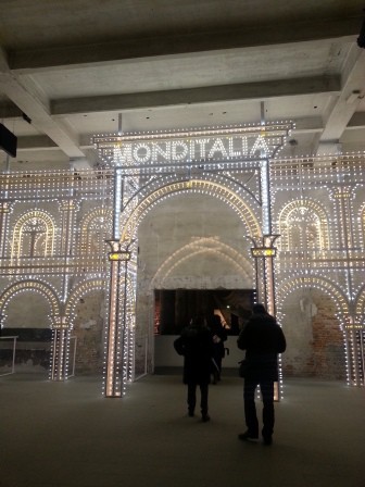 Visitare la Biennale di Venezia negli ultimi giorni, a fine novembre, significa avere intorno il meglio dei turisti internazionali, che si distinguono dal turista medio perché girano ben vestiti, portano pesanti borse cariche di carte e soprattutto trascurano bancarelle e vetrine di paccottiglia per andare dritti al loro obiettivo. Se la tirano ma va bene così. Giardini e Arsenale, le due sedi della lunga esposizione veneziana, si visitano con calma: io dedico mezza giornata a ciascuna ma potrei starci più a luper vedere tutto; quando posso prendo tempo per vedere anche le installazioni sparse in centro storico.