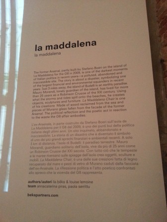 Mi permetto comunque di consigliare una visita approfondita alla Biennale anche a chi come me nella vita si occupa d’altro. Perché? Non è difficile districarsi nei padiglioni, con chiare indicazioni dei Paesi ospiti in ciascun edificio e ricchissime didascalie delle opere esposte, in italiano e inglese, tante foto e installazioni multimediali. Ogni padiglione nazionale è in sostanza un microcosmo che, nell’ultima edizione, raccontava la storia recente del Paese in un compendio utilissimo e completo. In una vecchia casa presso i giardini di Sant’Elena è nato il mio papà nel lontano 1939: non mi ha mai mostrato la sua casa natale, non so come cercarla e per questo trovo i giardini ancora più misteriosi e affascinanti.