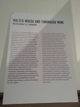 Eccellenze enogastronomiche fanno da contraltare a tutto ciò, come la storia del vino Timorasso nei colli tortonesi e di un suo ambasciatore, Walter Massa con l’omonima cantina situata a Monleale (AL). E su tutto il padiglione italiano svetta la storia di Milano attraverso i suoi grandi progetti sacri, civili, industriali, che nei secoli ne hanno fatto la storia sino a darle lo skyline attuale, inconfondibile, pronto (in teoria) per l’Expo.