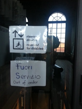 Dal piano terra vorrei salire al padiglione del Sudafrica ma devo farlo a piedi, poco male ma se avessi una carrozzina non potrei. Argomento: prima, durante, dopo l’apartheid e la vita di Nelson Mandela.