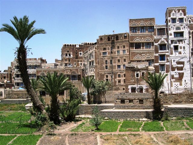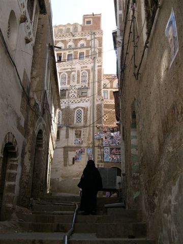 Domenica 17 nel primo vero giorno di viaggio andiamo alla scoperta della capitale yemenita, una città che abbiamo tante volte conosciuto per immagini, che ancora esercita un fascino irresistibile. Sembra il paese dei balocchi o meglio la casa di marzapane costruita da Hansel e Gretel, anche nei quartieri periferici dove le case moderne sono riccamente decorate con fregi alle pareti e finestre colorate, secondo uno stile unico e inconfondibile. Camminiamo dalle 9 alle 17,30, con partenza e ritrovo alla porta Bab el Yemen. Da qui inizia la città vecchia che consta di quartieri commerciali, un souk antico più ricco e ben organizzato (tessuti, alimenti, spezie ecc.) accanto ad abitazioni molto alte, anche di 4-5 piani.