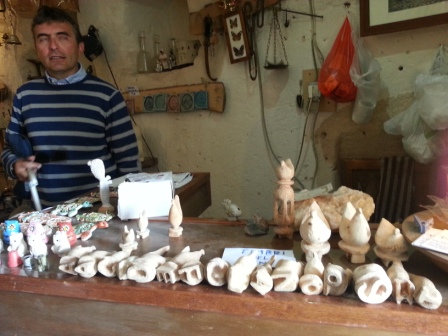 Diamo infine uno sguardo ad alcune produzioni artigianali materane: la donna in costume detta pacchiana, i timbri per il pane con le iniziali dei proprietari che accedevano al forno comune, e il mio preferito: il cuccù.