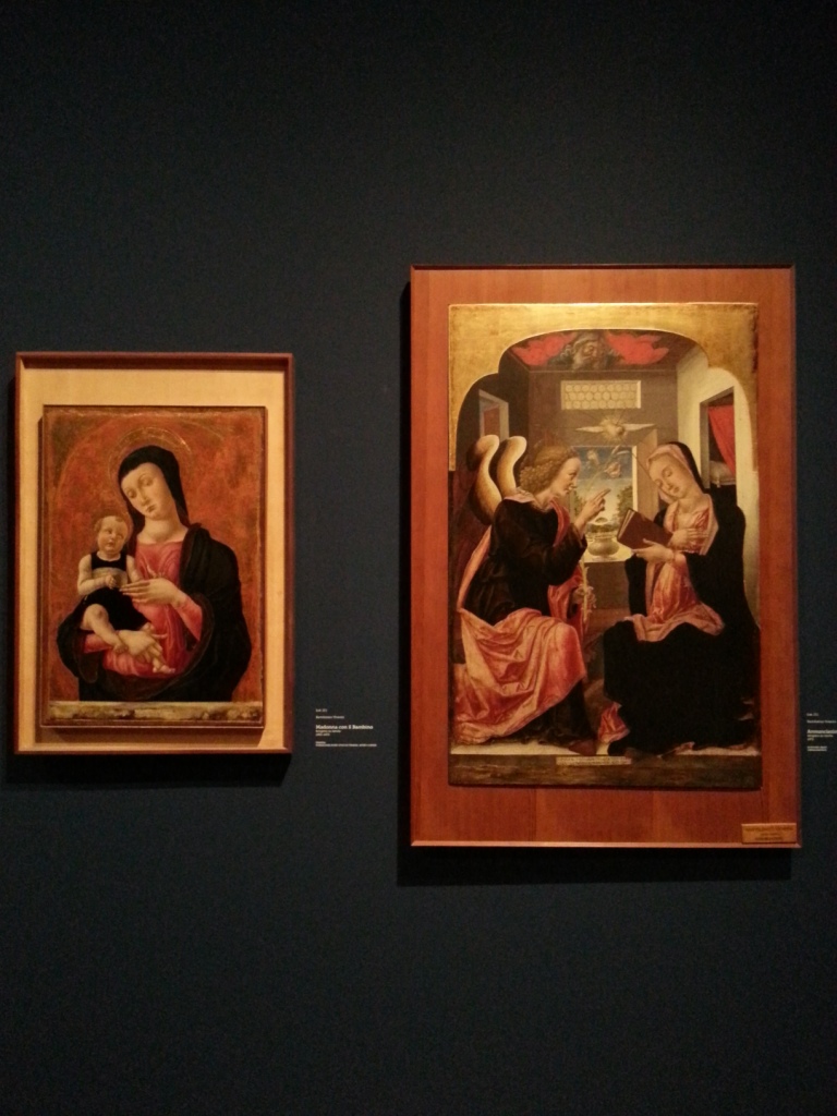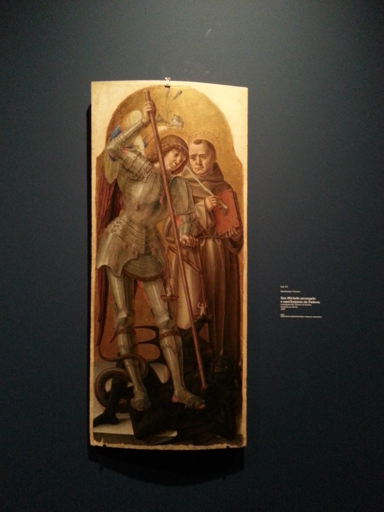 Giovanni Bellini e Antonello da Messina tra i primi, Andrea Mantegna e Filippo Lippi tra i secondi sono solo alcuni dei pittori attivi tra il Quattrocento e il Cinquecento, che con i Vivarini lavorano, ma i contemporanei e gli eredi dell’arte dei Vivarini sono molti di più, e si vede. Nei volti di Maria e Gesù ancora così squisitamente gotici, ritratti tante volte e spesso contornati da santi: Antonio, Caterina, Bernardino, Francesco, Sebastiano, anche se per me le più impressionanti sono Sant’Apollonia e Santa Monica.