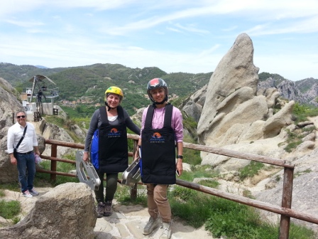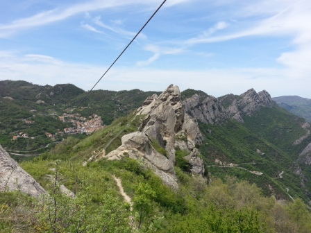 In loro attesa a Pietrapertosa cammino e chiacchiero in compagnia del primo cittadino Pasquale Stasi, un uomo gentilissimo a capo di una lista civica che conduce non senza fatiche, ma con entusiasmo e buona volontà. Il sindaco mi racconta che il paesaggio è una risorsa preziosa per migliorare la qualità della vita in primis degli abitanti, per prevenire nuove emigrazioni dopo quelle drammatiche dei decenni passati, che hanno portato allo spopolamento (non solo in montagna) di masse attratte dal lavoro nelle città del nord Italia e all’estero. Oggi la sfida è valorizzare l’agricoltura, mantenere la popolazione (che invecchia) e far studiare i giovani prima per la scuola dell’obbligo, poi alle superiori e all’università che si trovano a Potenza e Matera, capoluoghi di provincia. Ben venga quindi il volo dell’angelo, assieme al percorso delle sette pietre, ai trekking e ferrate nelle Dolomiti lucane, al birdwatching, insomma a tutte le attività all’aria aperta, qui per gli amanti della natura c’è l’imbarazzo della scelta.