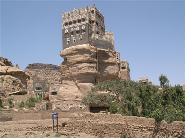 Pure questa giornata inizia all’alba, visto che dobbiamo percorrere oltre 600 km per attraversare tutto il Paese sino alla capitale, passando per la famigerata Marib affascinante ma “molto pericolosa” quindi con molti tratti dov’è necessaria la scorta. Partiamo alle 6,30 e salutiamo il verde fertilissimo Wadi Hadramaut, incrociamo le donne velate con il capo coperto da altissimi cappelli di paglia, e a velocità sostenuta giungiamo al governatorato di Shabwa con il deserto da dove normalmente i gruppi sono prelevati dai beduini, ma per andare poco oltre a dormire in un postaccio! Noi facciamo solamente le foto di rito alle belle dune e proseguiamo fino alla zona di Marib, decisamente affascinante e carica di storia ma purtroppo mal conservata e poco valorizzata. Visitiamo i cinque siti del giro classico: la diga vecchia, la diga nuova, il vecchio insediamento di Marib, i templi del sole e della luna.