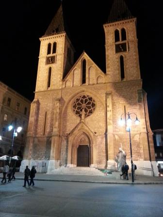 Sono confusa tra immagini e ricordi così toccanti che faccio fatica ad esprimere a parole. Guardando la cartina percorriamo un rettangolo lungo e stretto delimitato tra un viale e il fiume Miljacka ornato da alberi, parchi e giardini che punteggiano di verde lo skyline della capitale. Più lontano altri palazzi dominano la città dall’alto di dolci colline, mentre noi siamo in un’area pianeggiante dove convivono edifici vecchi e nuovi, moschee bellissime, la sinagoga, chiese ortodosse. Tanto è stato ricostruito e quel che oggi si erge fulgido verso il cielo, vent’anni fa facilmente era un cumulo di macerie fumanti sotto le quali sono stati seppelliti secoli di storia, cultura e vita. Convivere oggi è possibile e se lo auspicano in molti, all’incontro di culture non si sfugge ma a Sarajevo non si sfugge nemmeno ai ricordi delle guerre – scrivo sempre al plurale – che da oltre 100 anni sono nate o passate da qui.