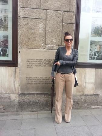 Che nel 1914 diede il via, anzi fu la scusa per iniziare il primo conflitto mondiale, con le figure simboliche dell’arciduca e signora, i già citati Franz Ferdinand e Sofia, vittime dell’attentato e Gavrilo Princip esecutore materiale. Dall’altra parte della strada una giovane coppia è impegnata nello shooting fotografico che precede il loro matrimonio, mi infilo in mezzo a loro per immortalarmi in un selfie quasi molesto, che non gradiscono né la sposa né il fotografo.