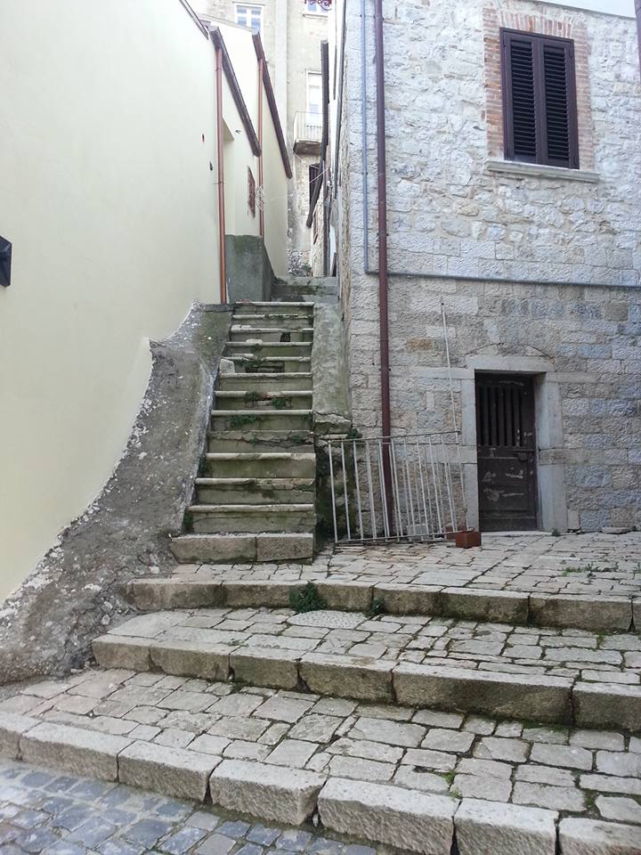 Da Bonefro escono persone di ogni età svuotando le case e l’anima di questo paese stupendo che ha molto da offrire al visitatore. Un castello e due chiese, diverse fontane e decine di palazzi antichi con nobili facciate e ricchi portali. Ma anche casette con finestre e balconi dai colori pastello, semplici come si conviene in questi paesi del sud dove il tempo sembra essersi fermato. Mi fermo per fare foto nel tardo pomeriggio e non temo i saliscendi, nonostante abbia camminato per sedici chilometri per arrivare qui. Affacciata dai balconi delle case, come il BB La Locanda del Buongustaio dove alloggio, vedo boschi e vallate che al tramonto sono accesi di mille colori, è finalmente tornato il sole dopo due giorni di cammino in condizioni meteo invernali, abbastanza impegnative. Ma ce l’ho fatta, sono a metà percorso! Peccato che ci siano tanti cartelli alle porte VENDESI – AFFITTASI – CEDESI. In questi paesi è la norma, ci vorrebbe un bel capofila a costruire un albergo diffuso per tenere accese le luci e aperte le porte, non solo in agosto quando i migranti vicini tornano a casa per un mese, e i migranti lontani vengono a vedere i luoghi d’origine della loro famiglia. E poi c’è il convento medievale, la destinazione finale della mia passeggiata bonefrana, di cui parlerò tra poco, forse qualcosa si sta muovendo proprio da qui, per promuovere il territorio in chiave di condivisione e partecipazione.