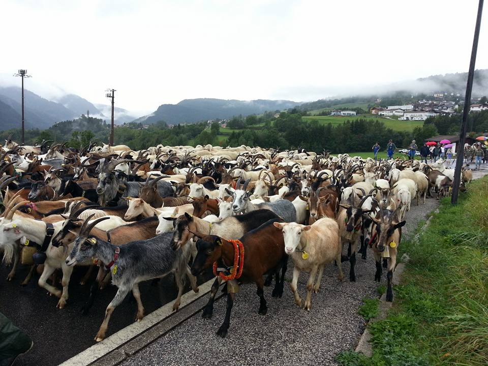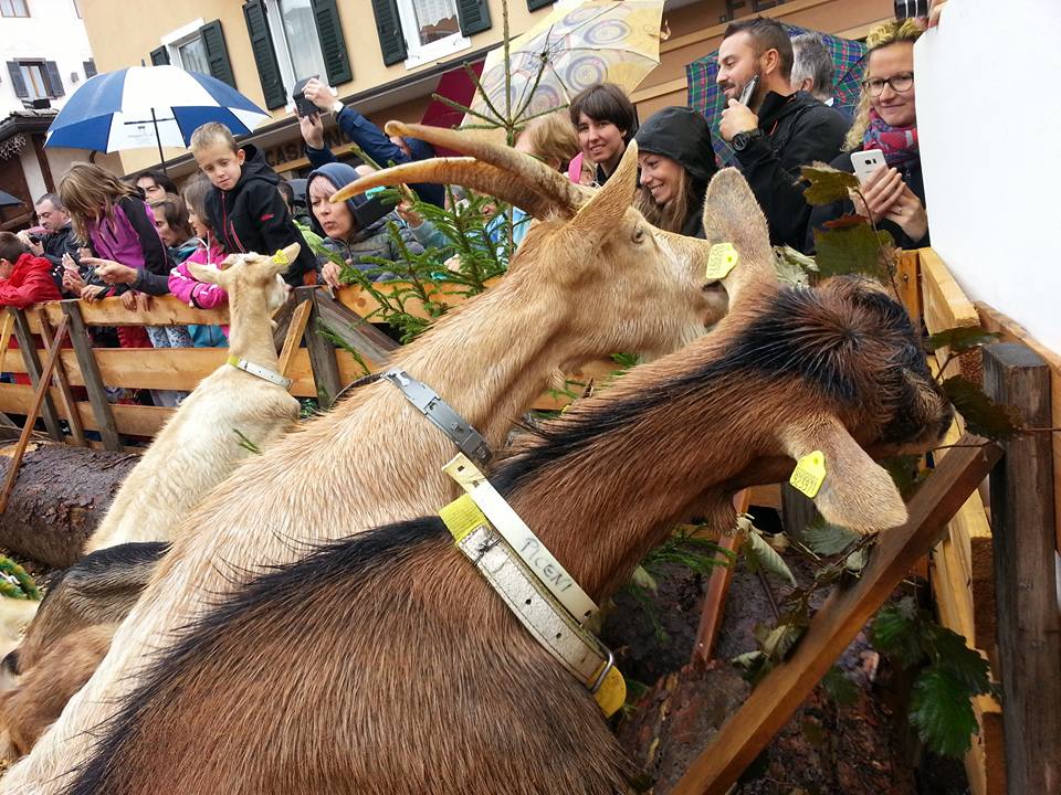 Insomma, le capre dove sono? Vado fuori dal centro verso il campo sportivo: mi dicono che siano state radunate di prima mattina in un recinto, dopo essere scese in camion dal vero e proprio alpeggio dove hanno trascorso i mesi estivi, in quota, brucando l’erba più fresca e respirando l’aria più sana. Non ci sono ancora, faccio in tempo a compiere un giro ad anello attorno al centro di Cavalese e vedere le case e hotel più nuovi, ma non meno belli. Perché qui governano le regole, la magnifica comunità di Fiemme antica di mille anni. E i piani regolatori si fanno come si deve rispettando materiali ed estetica, in un modello di democrazia condivisa che funziona, purtroppo non seguita in molte altre parti d’Italia ma sarebbe una gran bella cosa…