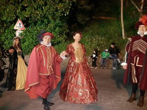 Ho avuto l’onore di vedere la parata dei Turchi due anni fa, anzi vi ho proprio partecipato sfilando con oltre mille figuranti in costume, potentini e non, indossando uno splendido abito rosso da dama del Cinquecento. Accanto a me c’era un notabile vestito di blu, il carissimo Piero che sento tuttora con l’idea di rivederci, giù da lui, su da me, chissà. Piero non solo mi ha preso la mano per alcune ore, nel lungo tragitto in salita dallo stadio, lungo via Pretoria e sino alla chiesa di San Gerardo. Mi ha presentato i suoi numerosi amici, chiacchierando (tra una foto e l’altra) coi vicini di sfilata che rappresentavano i notabili locali, abbigliati con costumi di varie epoche dal Medioevo all’Ottocento. Per me è stata un’esperienza incredibile e – spero – ripetibile, sono stata fortunata, lo so, ma ci ha messo lo zampino APT Basilicata (che oggi ringrazio nuovamente). Mi ha ospitato per promuovere il territorio e ha organizzato alla perfezione il mio soggiorno a Potenza. Adesso vorrei partecipare ad altre sfilate e manifestazioni in costume, ovunque esse siano. Vi ho avvisati…