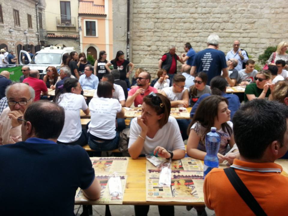 Domenica 29 maggio abbiamo appuntamento nel primo pomeriggio al BB per scendere allo stadio, il pranzo è servito nel cortile dove lunghi tavoli di legno sono imbanditi. Dalla sottostante cantina escono pentoloni di cibo e vino che assaggiamo assieme agli altri commensali, è davvero una allegra compagnia. Il vestito rosso mi sta a pennello ma non devo spennellarmi il volto, al trucco e parrucco penseremo quando saremo giù.