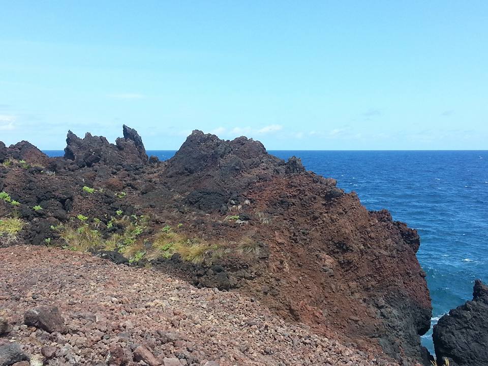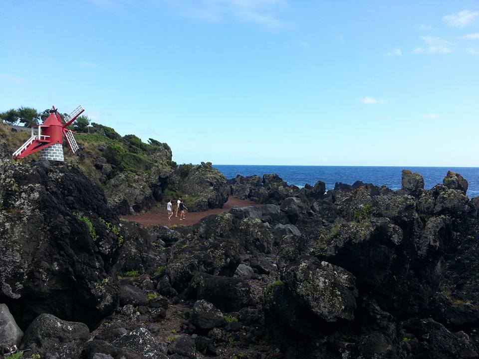 Partiamo per il secondo giro dell’isola, vi ho detto che Pico ha la forma di una balena? Trovo assai curiosa questa cosa e la utilizzerò per spiegarvi dove siamo andati: la testa del cetaceo è rivolta a ovest, la coda a est. Come Venezia per capirci, anche se “Venezia è un pesce” (cit.). Ieri siamo stati sulla pancia a sud, il secondo giorno la mattina dalla parte della testa (a nord ovest), il pomeriggio – ehm – nella parte meno nobile del cetaceo (a est). Avete presente l’espressione di augurio sulla balena? Ecco proprio quella, la citerò alla fine del post… Ci dirigiamo quindi a ovest, dove la maggior parte del gruppo vuole ancora camminare mentre io e Anna Rita preferiamo indugiare nei dolci panorami che si godono verso il mare, tra i vigneti patrimonio Unesco, in cima al famoso mulino rosso ritratto nelle guide. Un po’ di relax tra un trekking e l’altro ci sta, e con gioia ci ricongiungiamo dopo un’oretta in un punto dove quattordici pax, tutti gli altri, mi corrono incontro con queste parole. Robi iii dovevi venire eee è bellissimo ooo. La loro passeggiata si è svolta lungo la spiaggia di lava vulcanica che si è formata con una eruzione e si è solidificata come i fogli piegati di un libro. Sulle pendici dell’Etna tre mesi dopo vedrò una cosa simile, proprio un bello spettacolo, andateci se potete. In questo post pigro desidero condividere un minimo di informazioni, copio di seguito alcuni stralci di relazione del viaggio, dove ho descritto l’isola e i luoghi visitati a Pico.