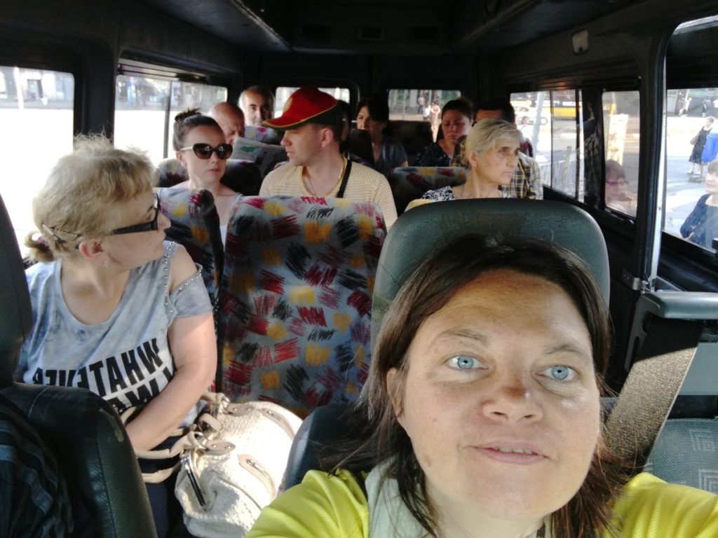 Il bus collettivo, la marshrutka, è un’istituzione caucasica e non solo che ho avuto il piacere di sperimentare. In sé è già un motivo per visitare la Georgia: per immergersi nei microcosmi popolari che si muovono a bordo dei pulmini bianchi secondo un sistema fluido e solido, per condividere stretti sedili sdruciti con passeggeri sempre gentili, per assistere a salite e discese, unioni e separazioni con e senza bagagli, e scene a volte più adatte a un film che alla vita reale. Gli orari sono frequenti, almeno per le tratte principali. Le stazioni bus di Tbilisi sono adiacenti alle fermate della metro oppure a sé stanti, consistono in file ordinate di pulmini bianchi che portano davanti un cartello con la destinazione, scritta in georgiano e in alfabeto arabo per nostra fortuna. Le marshrutke in partenza da altre località invece hanno le scritte solo in georgiano quindi dovete chiedere dove vanno, quando partono e… fidarvi di ciò che vi dicono! A volte c’è la biglietteria quindi si paga in anticipo, a volte pagate direttamente il conducente.