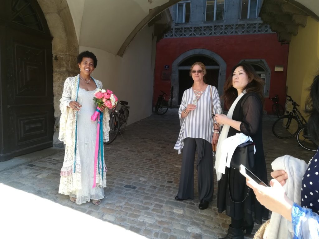 Di Venere e di Marte non si sposa e non si parte. Solo in Italia però, perché a Regensburg oggi venerdì 24 maggio c’è un matrimonio dietro l’altro. Siamo nella piazza dell’antico municipio dove spicca la torre medievale in stile gotico toscano. La sposa è (anzi le spose sono) bellissime, c’è un’aria di festa che si… Sposa perfettamente con il cielo blu e il sole primaverile. Lisa è una di queste, lei e il suo sposo mi hanno concesso del tempo assieme agli invitati di diverse nazionalità. Invece del mio #selfieconlasposa questa è una semplice foto con la sposa, ma va bene lo stesso. E poi via su una BMW lucida fiammante addobbata per l’occasione. Il sindaco è assente giustificato.
