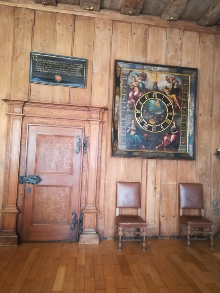 Esso apre solo per le visite guidate, non ha accesso libero, ed è la nostra penultima visita prima di andare al nuovo museo di storia della Baviera in allestimento che ho già raccontato (vedere oltre). Fondato nel 1245, nel periodo del Sacro Romano Impero questa fu la sede del Parlamento, l’amministrazione della città, e della Dieta Imperiale dal 1663 al 1806, 143 anni in cui, dopo la Riforma e la guerra dei trent’anni, crebbero idee di pace e democrazia alla base della Germania (e dell’Europa) moderna. Il palazzo è molto bello sia all’esterno sia all’interno: nel salone imperiale del 1564 riccamente decorato con scene allegoriche conserva i mobili originari e preziosi arredi lignei, nonché le sedute dei sette principi elettori, rappresentanti del potere civile ed ecclesiastico che si riunivano qui.