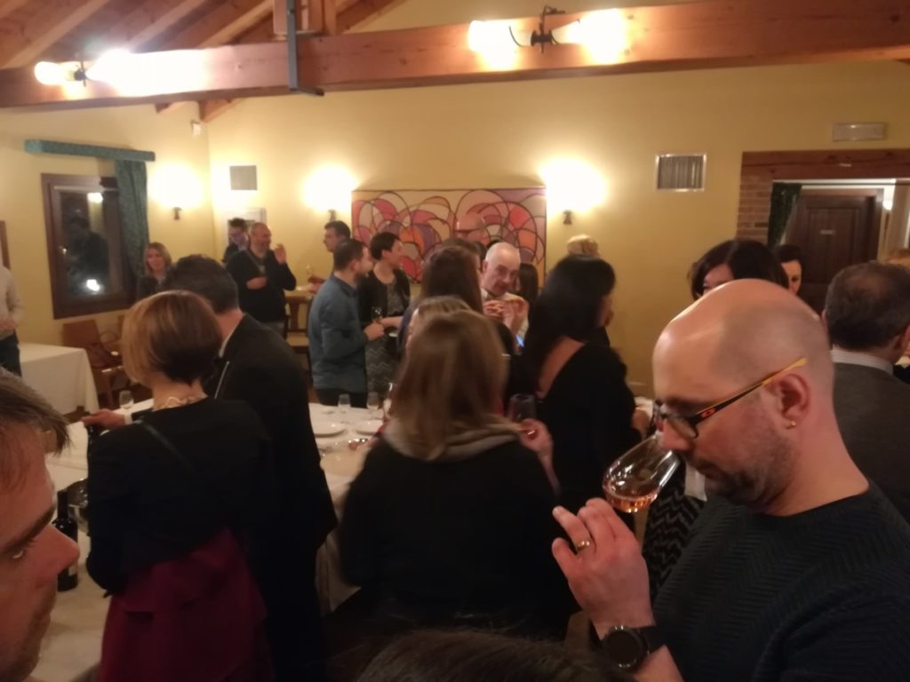 La serata consisteva in due momenti separati, per favorire sia gli aspetti conviviali, lo stare insieme per una chiacchiera durante l’introduzione, sia gli aspetti tecnici del percorso guidato. Ascoltare Andrea è sempre un piacere per la competenza e la passione che ci mette. Ci siamo dunque trovati per l’aperitivo al piano di sopra della Pasina, dove le fatiche e i pensieri della settimana si sono sciolti di fronte a un calice di vino.
