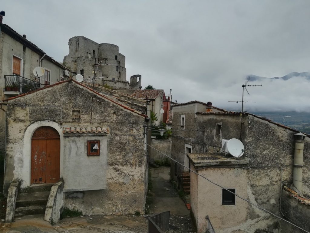 La sagoma del Castello Normanno Svevo si staglia verso il cielo e spicca sul profilo del paese, un insieme compatto di edifici in pietra.
