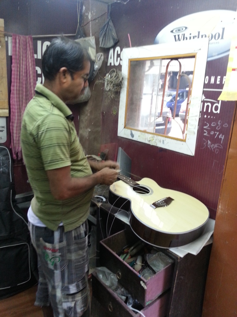 Fuori dalla casa troviamo negozi e laboratori artigiani: una panetteria accanto a una fabbrica di chitarre…