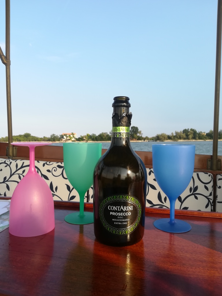 Godiamo la pace di questo luogo magico e facciamo svariati brindisi con l’ottimo Prosecco DOCG di Tenuta Contarini, tenuto al fresco da JP.