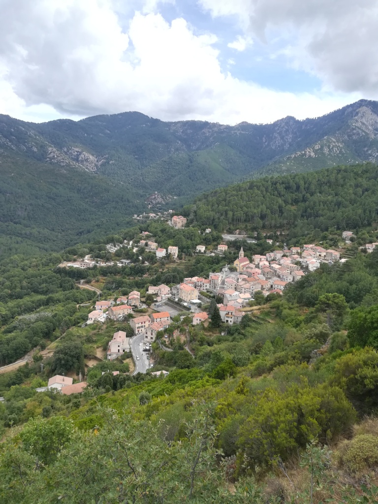 Risaliamo in auto e ci dirigiamo verso l’interno, destinazione Corte. Ma non sulla strada principale, la direttissima da meno di un’ora, andiamo per stradine così strette che più strette non si può! Questo percorso è molto più lungo, la strada è tutta curve. E per aggiungere adrenalina, vediamo che stiamo andando in riserva e confidiamo in un gran numero di distributori lungo la strada. Sbagliato! Consiglio a posteriori di fare benzina prima di addentrarvi all’interno della Corsica!