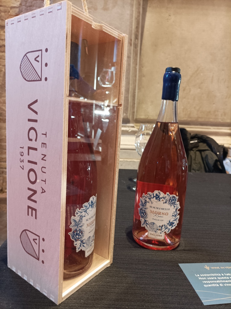 Si trovano una accanto all’altra nel salone della Misericordia, venti banchi degustazione con un tappeto rosso al centro. Il red carpet del vino. Alcune sono piccole chicche in territori nascosti che producono solo uno o pochi vini, altre sono grandi imprese con tanti ettari vitati e tanti vini. Bianchi rossi e bollicine per accontentare tutti i gusti. A Wine in Venice ieri ho apprezzato la possibilità di parlare con i titolari delle cantine o i responsabili, enologo, commerciale eccetera. Se devo dire una cosa, la presenza di grandi cantine mi lascia sempre un poco spiazzata a questi eventi molto più intimi ed esclusivi rispetto alle grandi fiere internazionali, ma è fuor di dubbio che abbiano tanti meriti, nel lavoro e impegno di tutti i giorni. Portano il vino, fra le espressioni migliori del Made in Italy, in giro per il mondo, così facendo promuovono il territorio e di conseguenza spingono anche cantine più piccole verso i mercati internazionali. Alcune cantine che mi hanno stupita per la particolarità dei loro vini: