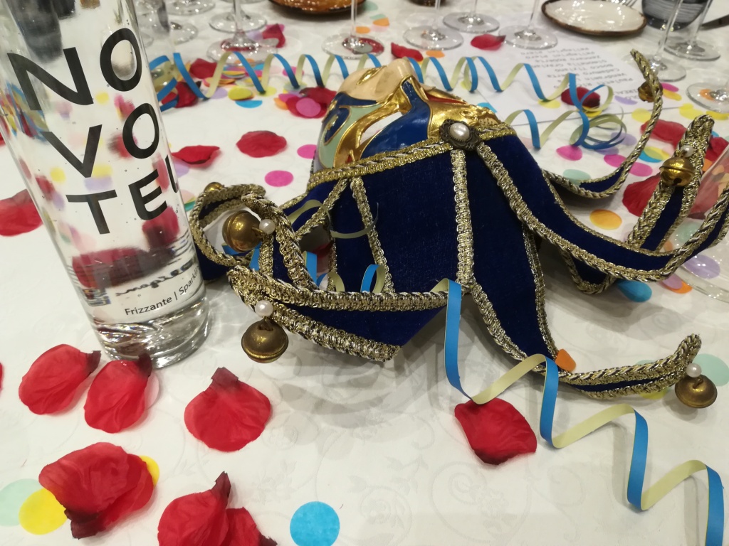 Lo scorso anno ho avuto l’onore di prendere parte all’analogo evento AIS Venezia. Quante volte abbiamo sentito l’espressione “A Carnevale ogni scherzo vale”? Ebbene nel febbraio 2023 ho provato questa leggera variazione sul tema: A Carnevale ogni vino vale. Era il titolo della serata con cui AIS Venezia ha accolto gli appassionati di vino, fra cui la sottoscritta. Nel salone del Novotel Mestre si è svolta un’allegra serata di Carnevale e di conoscenza dei vini, tutto insieme!! Un racconto teatralizzato dalle maschere di Pantakin con tanto divertimento. Io ero al tavolo con delle persone carinissime con cui abbiamo parlato e degustato, la serata è volata via!