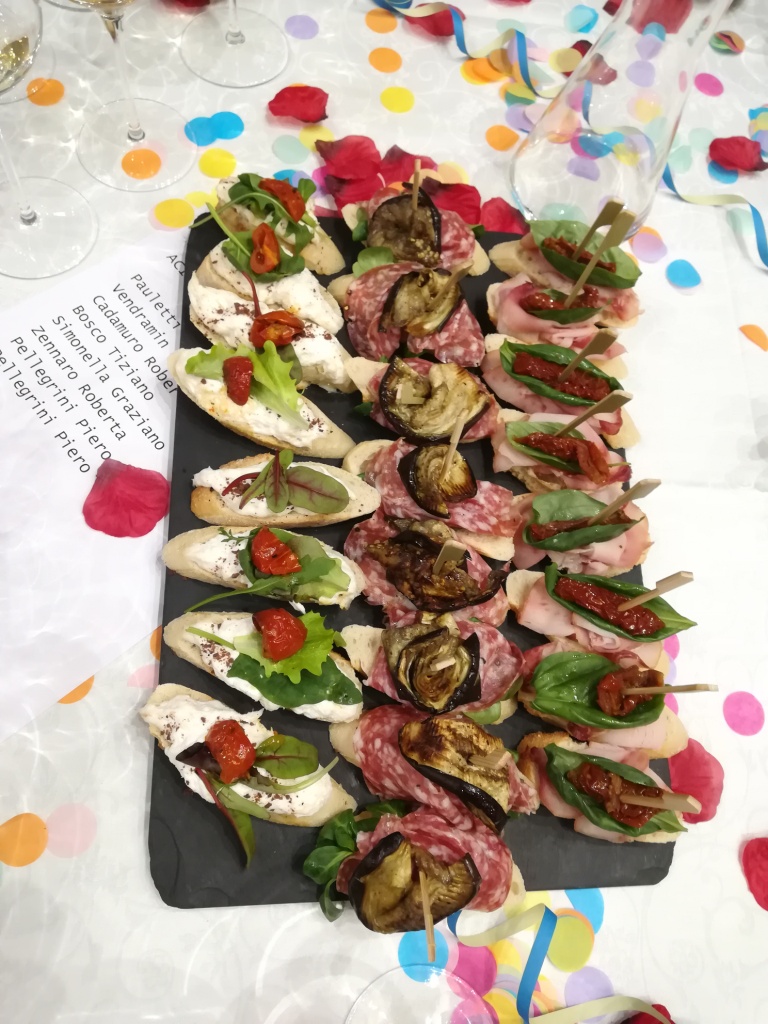 [A carnevale ogni vino vale] Una location che fa girare la testa. Sarà per i vini in degustazione? O perché è carnevale? O per i miei simpatici compagni di tavolo? Giovedì sera il Novotel di Mestre si è trasformato in un palcoscenico per “A carnevale ogni vino vale” evento firmato da AIS Venezia. Sette città 7 carnevali 7 vini, iniziando con Comacchio e Acireale. Fano e Viareggio. E poi Putignano, Venezia e infine Ivrea. AIS Venezia è una fucina di idee e questa è stata superlativa: portare al Novotel di Mestre i vini delle città dove, in questi giorni, impazza il Carnevale. Superlativi pure i vini di cantine diverse, tutte interessanti sia quelle che conoscevo già sia quelle a me ignote. Ma c’era molto di più: un elegante accompagnamento musicale e lo spettacolo teatrale dei Pantakin. Che tra frizzi e lazzi ci hanno raccontato le storie dei carnevali dove abbiamo viaggiato per una sera. Dal Piemonte alla Sicilia. Una cena leggera ma sostanziosa ci ha saziato. Tre cicheti un pasticcio e infine i dolci del Carnevale. Galani frittelle castagnole. Ogni tavolo è stato dedicato a un carnevale, il mio ad Acireale. Tra i miei 7 vicini di tavolo, tutti carinissimi, “spiccano” i titolari di a casa di Anna. Vi parlerò presto di questa impresa sociale, azienda agricola di Mestre che fa tanto per le persone e l’ambiente. Tutte le immagini sono sulla mia pagina Facebook #Gamberetta travelblog