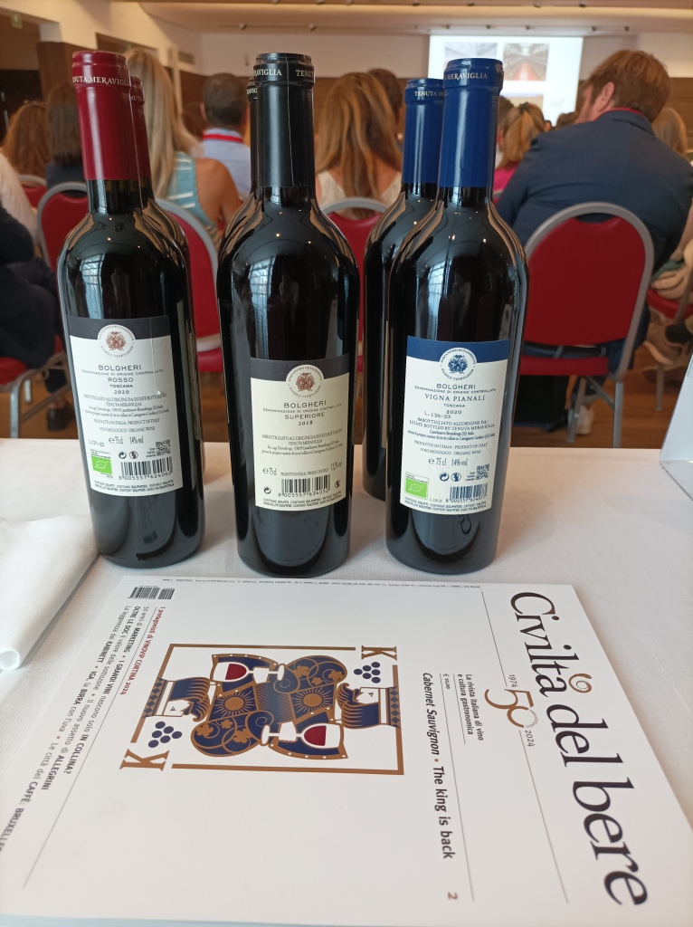 Lunedì 15 di mattina si è tenuta la conferenza con degustazione dal titolo Cabernet Vs Cabernet che ha visto un interessante confronto fra studiosi ed enologi su due famosi vitigni internazionali, versatili e ricchi di sfumature. Cabernet Franc e Cabernet Sauvignon sono coltivati in otto regioni italiane e in molti paesi del mondo, danno vita sia a vini freschi e profumati, sia a grandi espressioni di territori, come Bolgheri in Toscana, di cui sono diventati veri e propri simboli. Sono intervenuti tre grandi esperti internazionali: Pierre Seillan winemaker, Luigi Bavaresco professore di viticoltura, Paolo Bomben enologo Vivai Cooperativi Rauscedo.