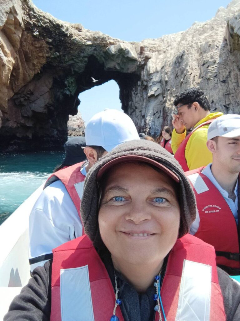 Stiamo in silenzio sulla barca ad ascoltare le spiegazioni della guida. In sottofondo hanno messo la musica perfetta, alternano una canzone in spagnolo e una in inglese. Tipo Gloria Estefan e poi i Coldplay. Tutta l’area marina è una riserva protetta e non si può scendere dalla barca. Giriamo attorno a un arco naturale. Arrivano poi gli isolotti ricoperti da montagne di guano maleodorante, nel 2021 l’hanno raccolto per l’ultima volta. Ora lo lasciano accumulare, rifaranno la raccolta nel 2024. Altre isole più piccole sono poco più di scogli scuri e grotte, dove si infrangono le onde e dove riposano tanti animali uno più carino dell’altro: