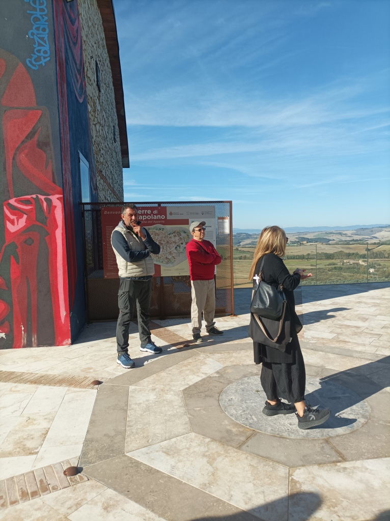 Domenica 12 ottobre ho partecipato a una passeggiata con a tema arte e cultura a Serre di Rapolano. Nel tour guidato di due siamo andati su e giù per i vicoli del borgo, sostando nei punti di interesse e con un gustoso finale. La degustazione di prodotti tipici, olio e vino immancabili ma anche lavanda, legumi e cereali, si è svolta nell’antico frantoio dove abbiamo ammirato le attrezzature un tempo utilizzate per trasformare le olive nel prezioso oro giallo, l’olio extravergine di oliva DOP che tuttora è un simbolo della Toscana nel mondo. Gli appuntamenti mensili alla scoperta di serre di Rapolano, da aprile a novembre 2025, hanno temi diversi. L’ultimo è in programma domenica 16 novembre e si chiamerà “Percorsi d’Arte tra Cave e Antichi Mestieri”.